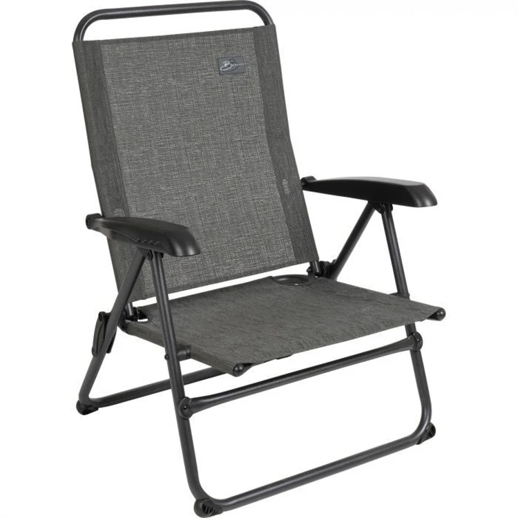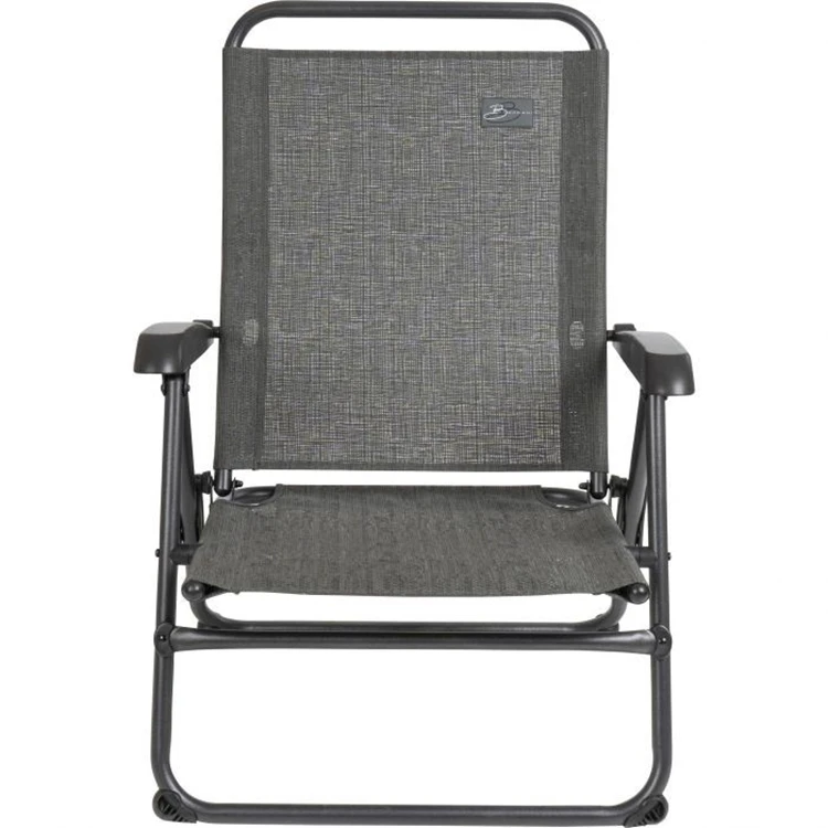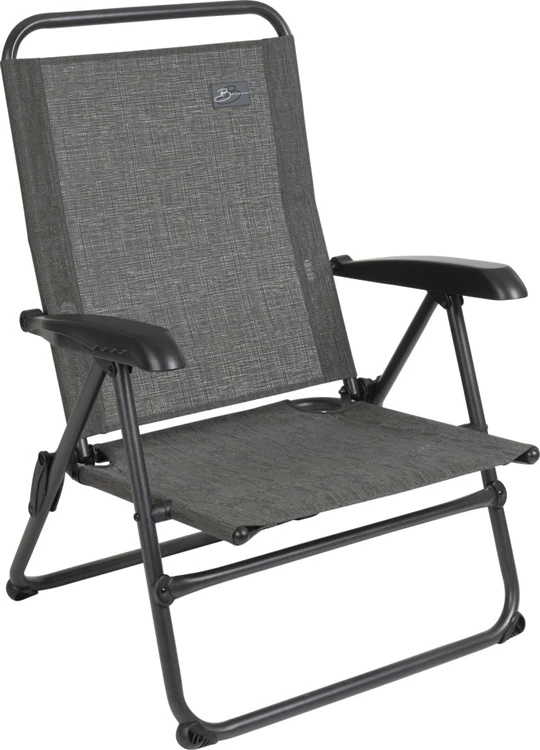 De Toscane strandstoel is verstelbaar in 6 standen met behulp van de armleuningen. Deze Bardani campingstoel heeft een stevig zwart gepoedercoat aluminium en een bekleding van textileen in de kleur urban grey.