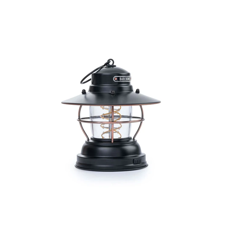 Deze water- en roestbestendige stalen lantaarn is geïnspireerd op oude mijn- en magazijnlampen en creëert overal een intieme ruimte. De Outpost Lantern is groter dan onze populaire Edison Mini Lantern en is ideaal in een tent, als glamping leeslamp, gecureerd op een outdoor tafelschikking, of decoratief opgehangen in een achtertuin of stedelijke patio. De Outpost maakt gebruik van een warm Edison-stijl LED touw licht in de vorm van een Helix. Deze unieke LED-gloeidraad voegt een vintage kwaliteit toe en produceert een warme, zacht gloeiende sfeer. Er zijn drie manieren om de Outpost Lantern van stroom te voorzien, voor maximale veelzijdigheid: USB-C naar externe stroombron, via de Barebones-specifieke LI-ON batterij die intern wordt opgeladen, of via D-cel batterijen.