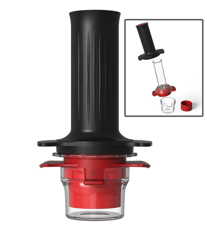 S werelds meest compacte en de lichtstgewichte espressomachine. Beschikt over een espressokopje, een vulschepje, filter en een pomp. De espressomaker maakt gebruik van een hydraulisch systeem gebruikt om de extractiekracht te verhogen en heeft een constante druk boven de 9 bar. Vul de filter met koffie en druk deze aan met het vulschepje, schroef de doorzichtige buis op het filter en plaats de zwarte pomp hierover. Met een pompbeweging drukt u de espresso in het kopje. De espressomaker zeer compact om mee te nemen.