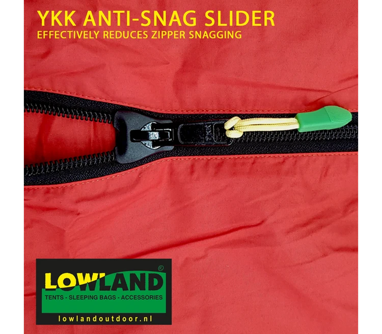 Ben je niet een rasechte kampeerder, maar ga je wel eens een keer een zomers weekendje kamperen? Dan is LOWLAND OUTDOOR® Companion Economy de ideale keuze voor jou. Deze donzen slaapzak kun je naast je outdoor-avonturen makkelijk gebruiken als luxe dekbed. Zo heb je er elke nacht plezier van! Deze slaapzak heeft een single layer constructie. Deze constructie zorgt er echter voor dat er een minder goede isolatie is, dan bij de Box constructie. Er is dus geen sprake van verbintenis tussen sommige stukken dons, hierdoor ontstaan er op die plaatsen minder warme zones. Deze manier van confectioneren is eenvoudiger vandaar de naam Companion Economy! Een 2-richtingrits zorgt er voor dat je twee Lowland Outdoor slaapzakken knus aan elkaar kan ritsen; maar wordt het je toch te warm, dan kan je de slaapzak aan je voeten losritsen en krijg je extra ventilatie. De YKK rits is voorzien van een anti snag slider. Hierdoor wordt het risico op stof tussen de rits voorkomen. Dit is het vaakst voorkomende probleem, een rits die vastzit en niet meer open wil. Dit gebeurt doordat er een stukje stof tussen zit en het kost vaak redelijk wat moeite en kracht om dit los te maken. Met deze anti snag slider is je rits volledig beschermd. De Companion Economy biedt isolatie tot een omgevingstemperatuur van ongeveer +5°C. De slaapzak is gevuld met 90% eendendons en heeft een tijk van 100% zacht Egyptisch katoen.