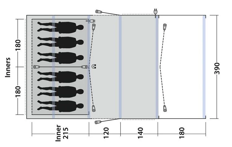Geschikt voor maximaal zes personen in twee premier-kamers met Panorama-uitzichten, Birchdale 6PA biedt veel veelzijdige ruimte voor een gezin van een campers. Onder de dieptewereld van 180 cm biedt de verticale inlaathouder gemakkelijke toegang en meer binnenruimte. Verse luchtcirculatie wordt verzekerd door mesh binoculaire zijdeuren en lage ventilatiepanelen. Dit model is uitgerust met stormbanden voor meer stabiliteit.