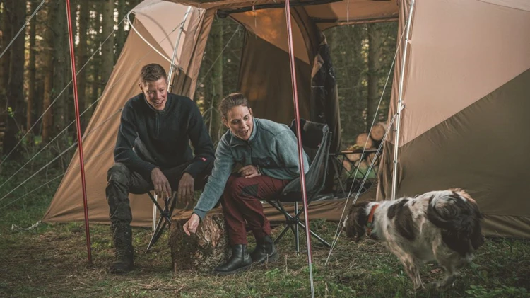 De Wolf Moon TC 5XP is geschikt voor vijf personen en maakt gebruik van HydroTex polykatoen RS om een comfortabel microklimaat in de tent te behouden dat perfect is voor warme klimaten. Ventilatieopeningen achteraan en lage ventilatieopeningen regelen de luchtstroom die wordt versterkt door gaaspanelen achter de externe deuren, die de tent openen voor insectenvrije ventilatie en een prachtig uitzicht. Een waterdicht gordijn met pvc-paneel aan de bovenkant zorgt samen met het gaasvenster voor een goed evenwicht tussen privacy en luchtstroom. Zijdeur met regenwering en voorruimte beschermt de toegang.