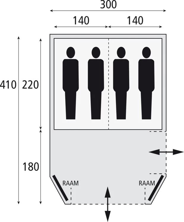 De Safarica Laguna 300 koepeltent biedt ruimte aan 4 personen en heeft een handige zij-ingang. De binnentent is gemaakt van ventilerend polyamide en heeft handige opbergvakken. De slaapcabines zijn donker voor meer slaapcomfort en de scheidingswand is uitneembaar. In de deur en aan de achterzijde van deze koepeltent zit horrengaas voor extra ventilatie. In het leefgedeelte ligt een kuipgrondzeil van PE. De Laguna 300 tent wordt geleverd met draagtas, haringen en scheerlijnen.
